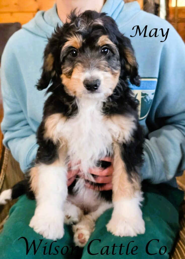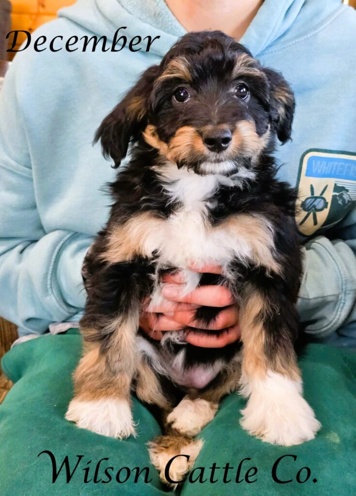 Meadow had 5 aussiedoodle puppies that were born on Nov. 22nd and there are 2 girls and 3 boys. They will vary in weight between 15 to 25 lbs. depending on the puppy. These puppies will be ready to go to their forever homes on Jan. 17th.